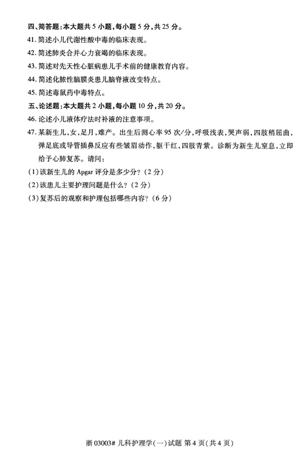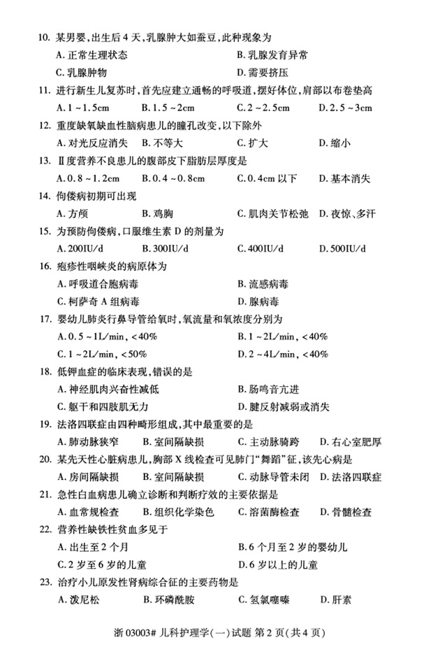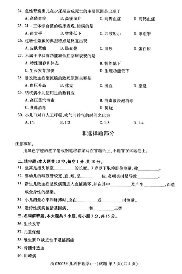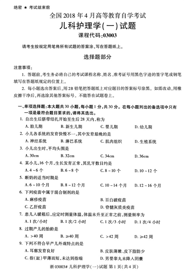 全国2018年4月高等教育自考03003儿科护理学(一)试题PDF