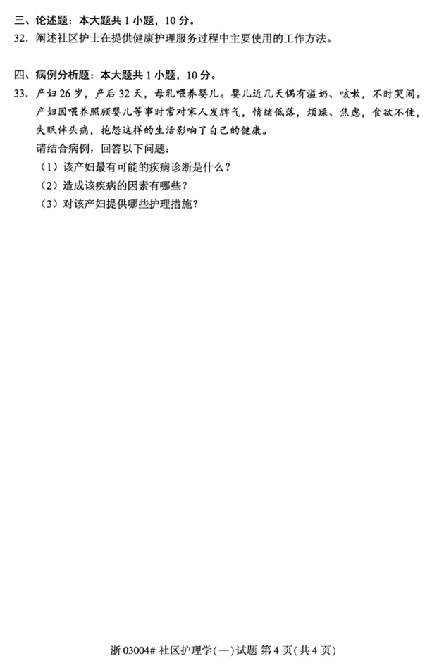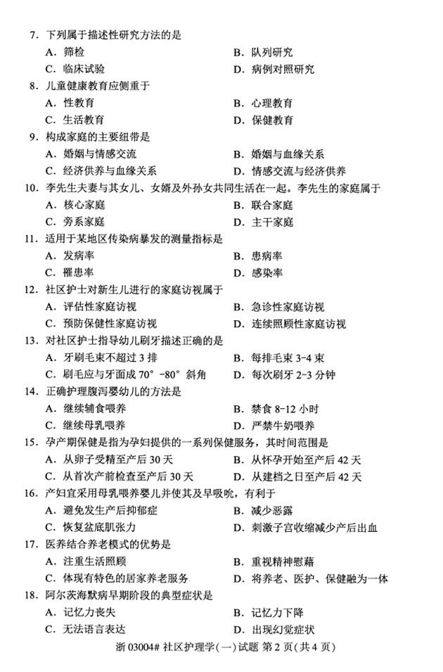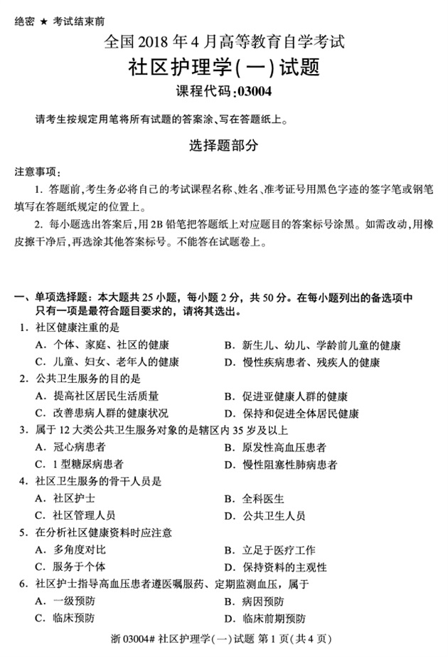 全国2018年4月高等教育自考03004社区护理学(一)试题,由浙江省自考网整理,供全国自考生参考。更多自考试题练习,敬请自考生关注浙江省自考网。