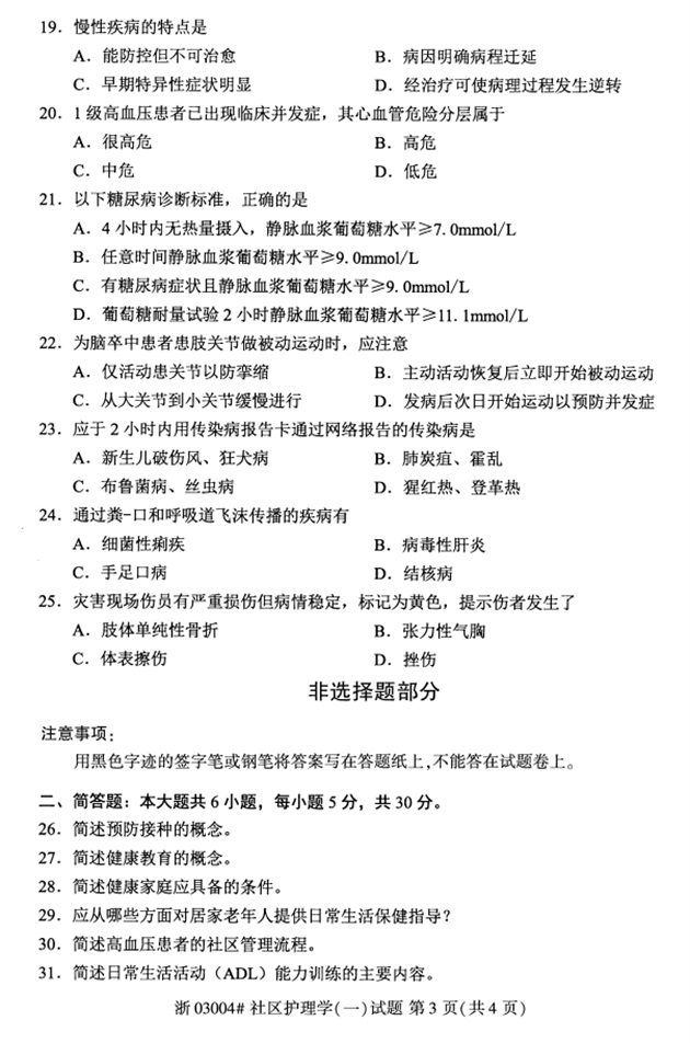 全国2018年4月高等教育自考03004社区护理学(一)试题PDF