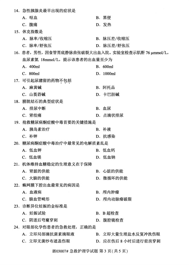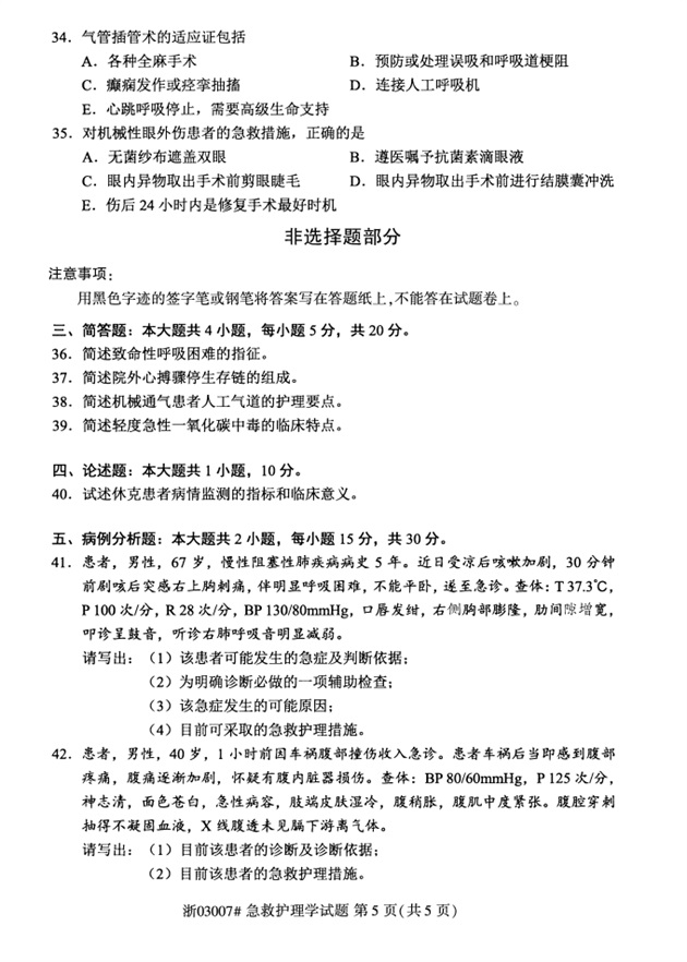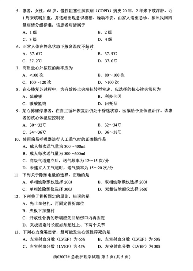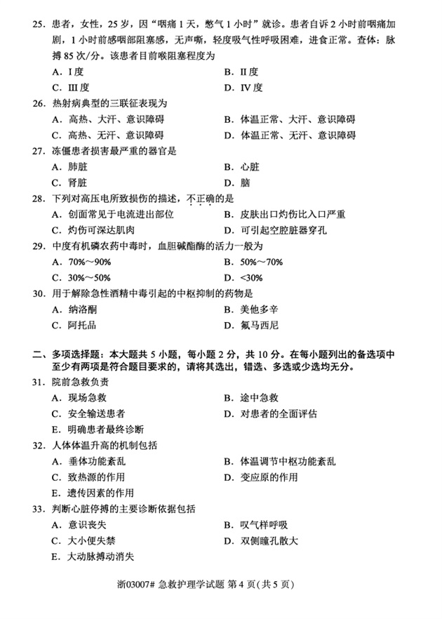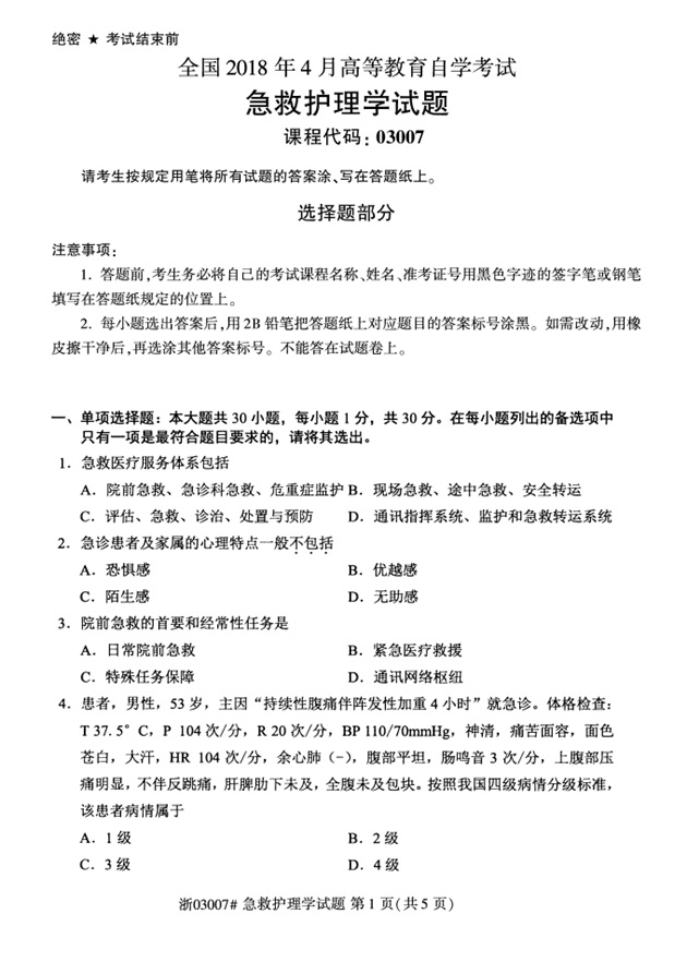 全国2018年4月高等教育自考03007急救护理学试题PDF