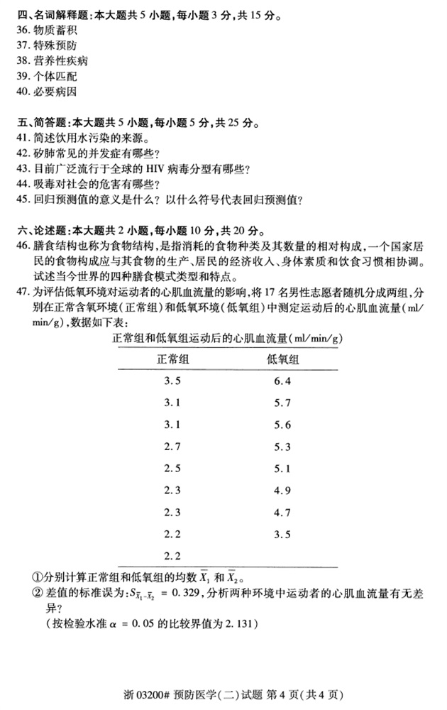 试题科目:预防医学(二)试题