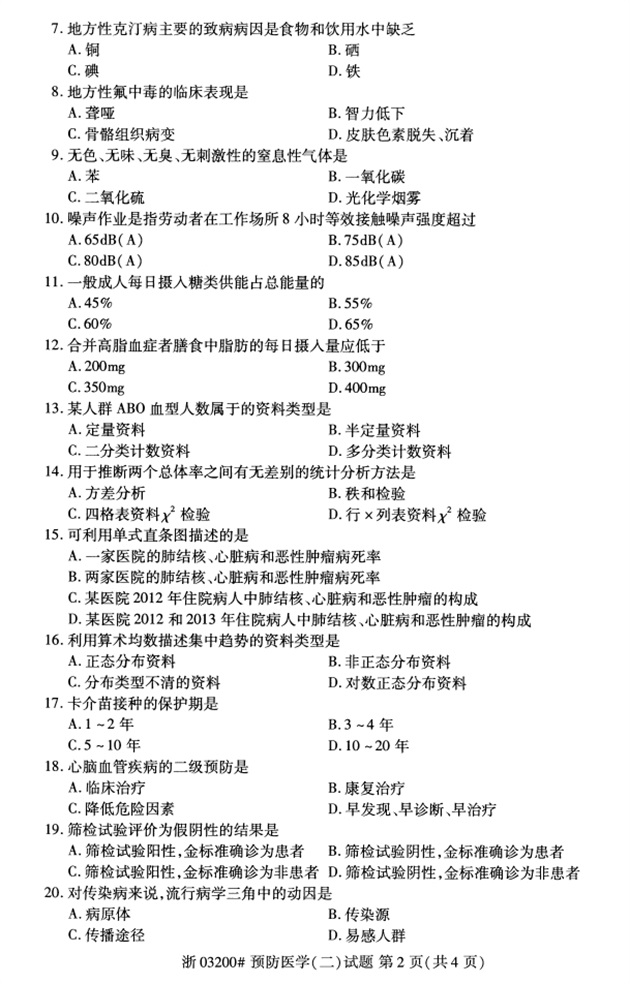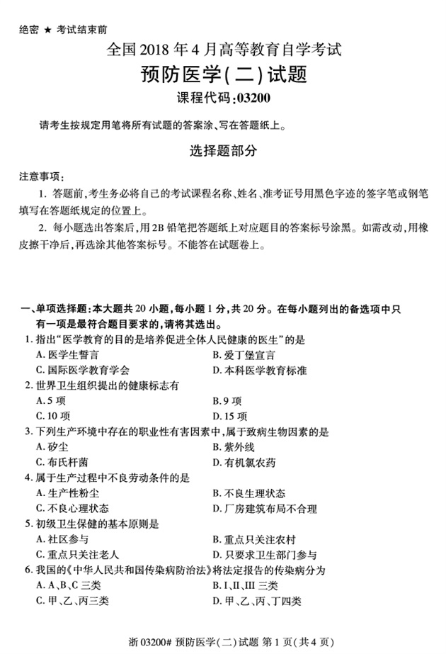 全国2018年4月高等教育自考03200预防医学(二)试题PDF