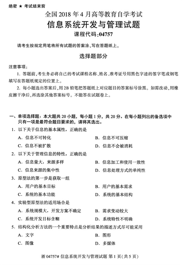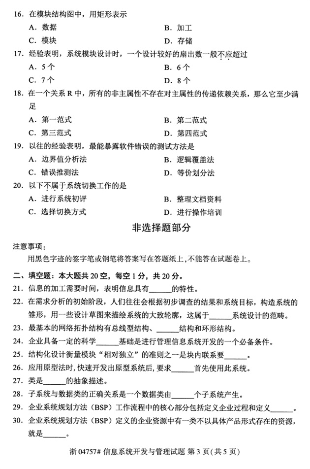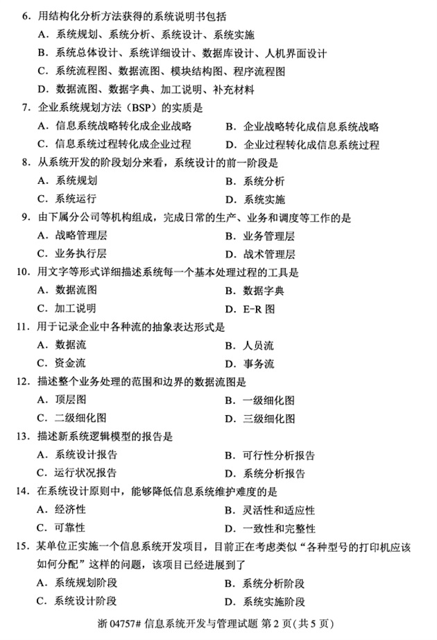 试题科目:信息系统开发与管理试题