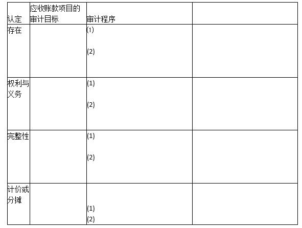 【要求】根据应收账款的认定,填写相应的项目审计目标并针对每个审计目标设计两项简要的审计程序(填入表中)。