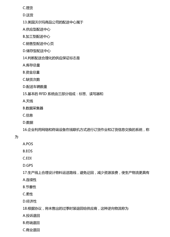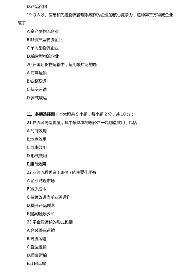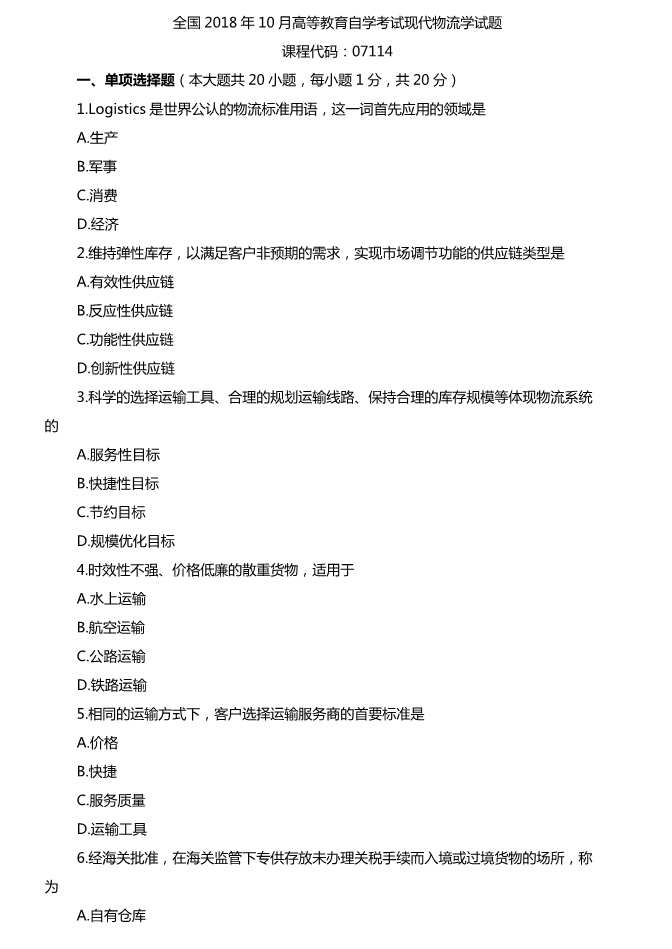 全国2018年10月高等教育自考《现代物流学》试题,由浙江自考网整理,供全国自考生参考。