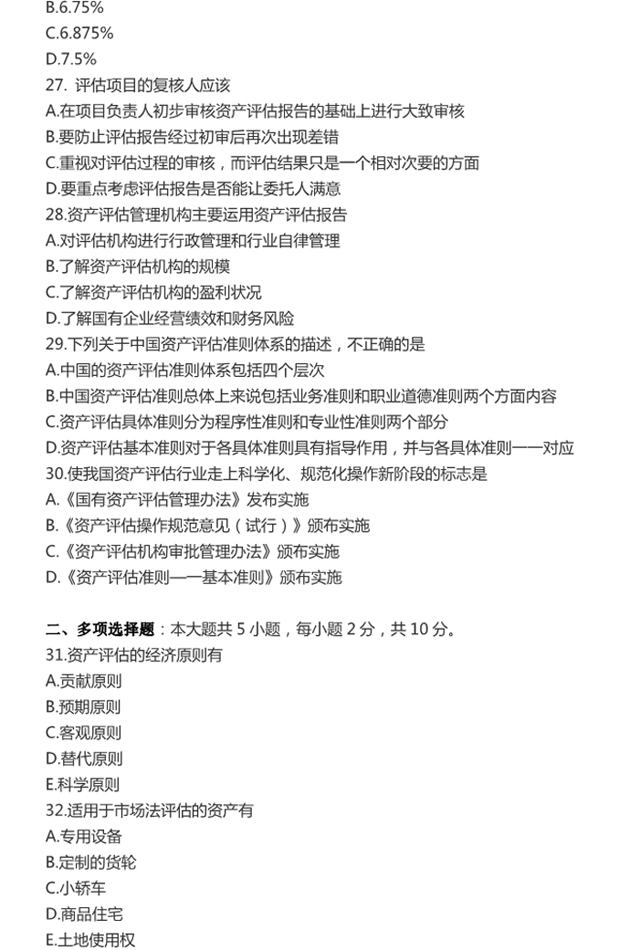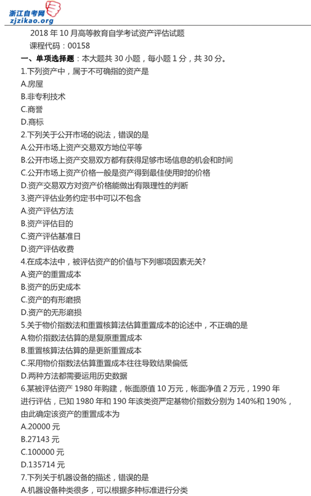 全国2018年10月高等教育自考《资产评估》试题,由浙江自考网整理,供全国自考生参考。