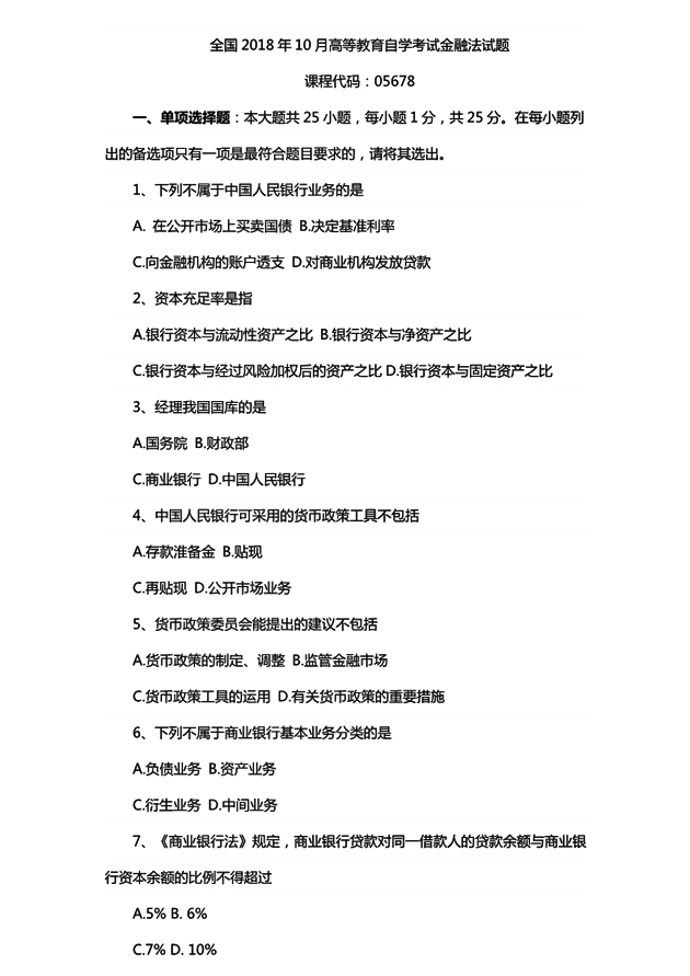 全国2018年10月高等教育自考《金融法》试题,由浙江自考网整理,供全国自考生参考。