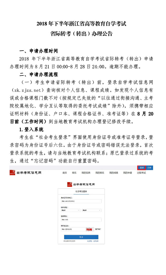 【宁波市】2018年下半年浙江省高等教育自学考试省际转考(转出)办理公告