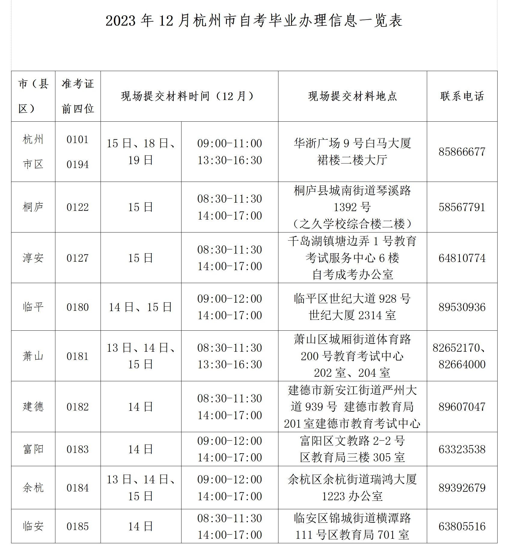 2023年下半年杭州主城区自学考试毕业手续办理通知