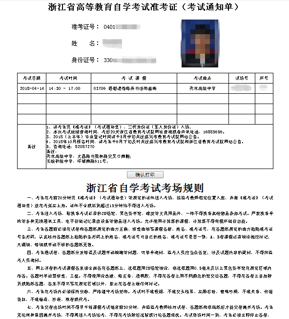 【嘉兴市】2018年4月自学考试准考证(考试通知单)打印通告