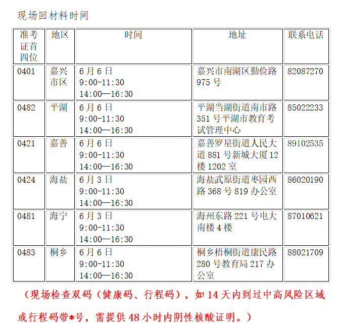 4.由于疫情原因本次现场办理考生请配合做好防控工作。(现场检查双码(健康码、行程码),如14天内到过中高风险区域或行程码带*号,需提供48小时内阴性核酸证明。)