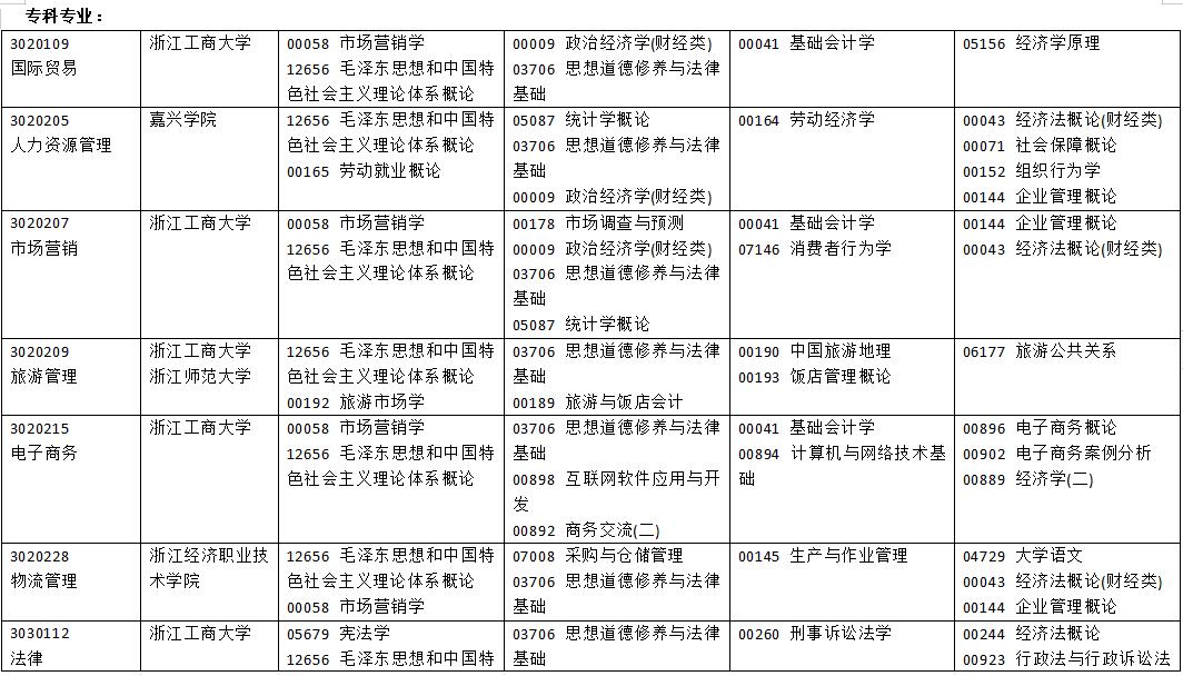 以下列举了一些浙江自考专科考试科目,供考生参考一下: