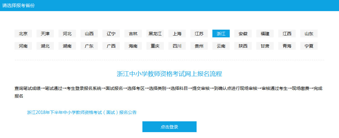 2、点击报名系统,然后选择报考省份(浙江省),点击登录。