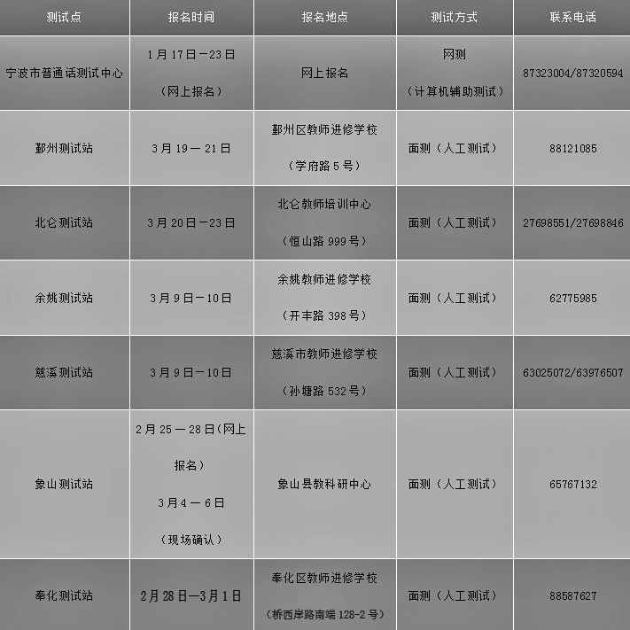 【宁波市】2019年上半年普通话水平测试报名即将启动,附各县(市、区)报名时间及地点