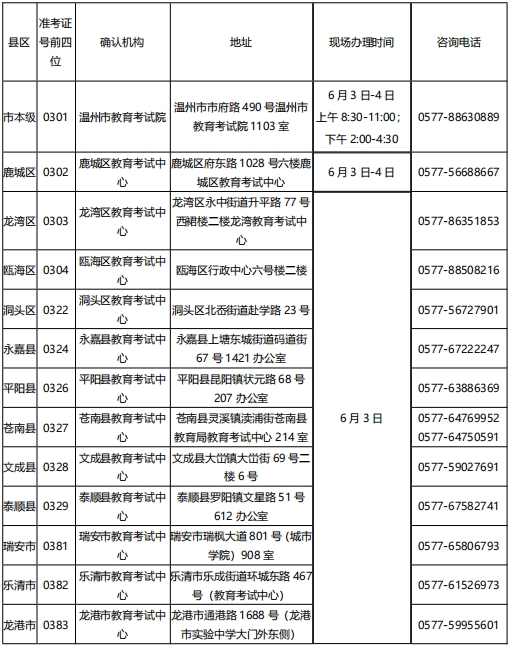 七、温州市本级确认点的考生现场交材料后领取毕业生登记表,按要求填写内容、盖章,并务必于6月4日4:30前交回温州市教育考试院,逾期不予受理。为减少考生来回奔波,考生也可下载《毕业生登记表背面(202406)》(附件2),用普通标准A4白纸(70克A4打印纸)打印,按考生必读要求填写“个人鉴定”和“单位鉴定”并盖章,于现场提交材料时交由考试机构打印正面。考生需确保登记表整洁,书写内容准确无涂改,盖章符合要求,否则必须重新填写并盖章。
