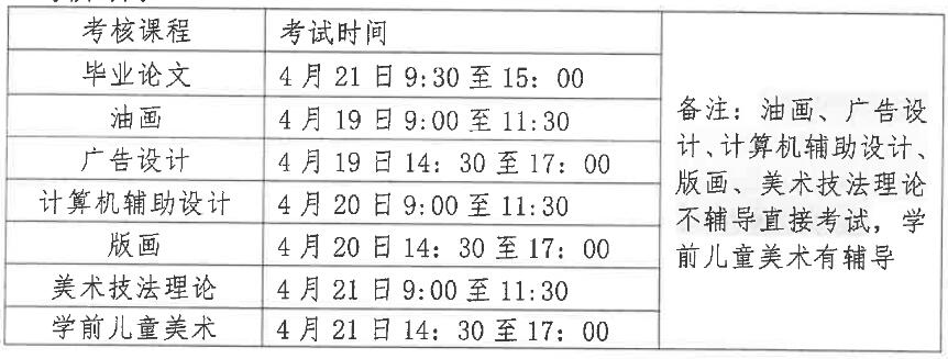 二、考核科目:油画、版画、计算机辅助设计、广告设计、美术技法理论、学前儿童美术、毕业论文。
