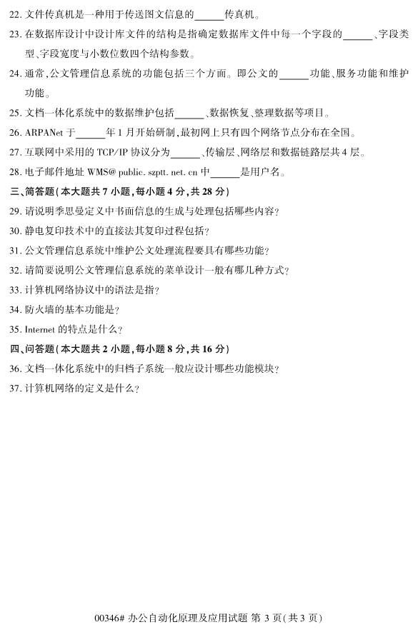 真题下载:浙江2019年4月自考办公自动化原理及应用试题