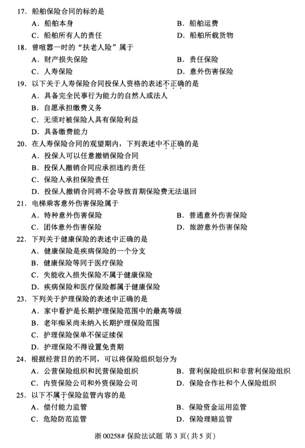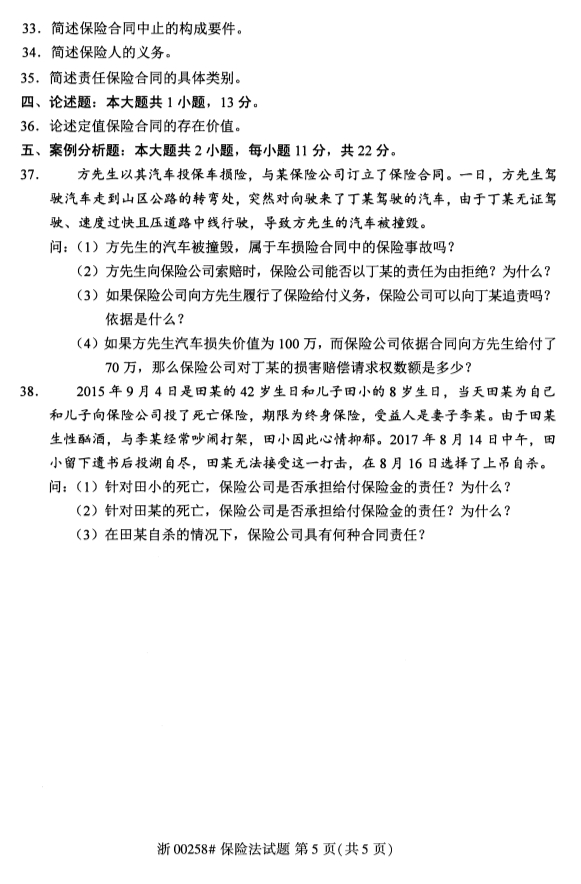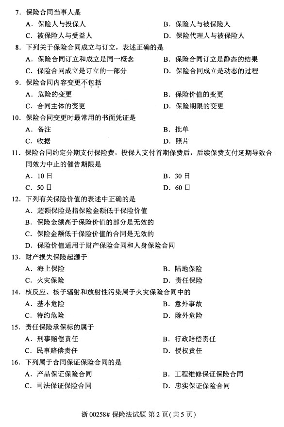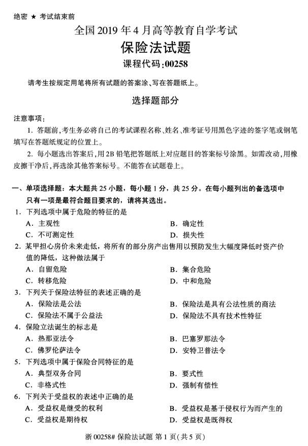 • 所在位置:浙江自考网 > 自考试卷 > 全国2019年4月自考00258保险法试题
