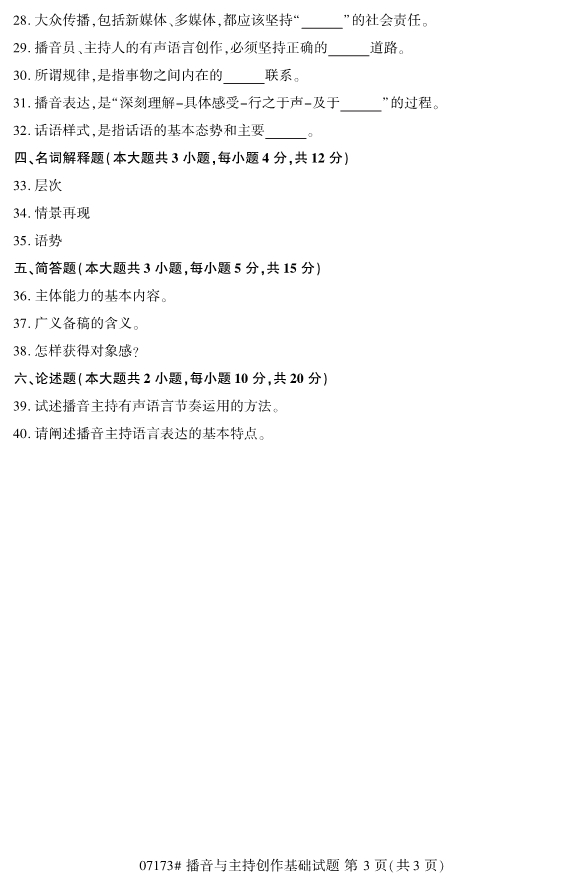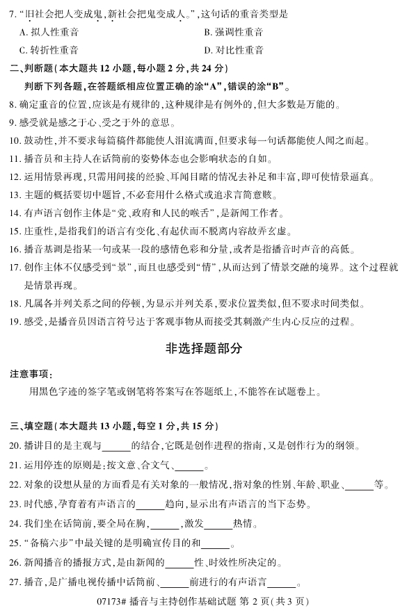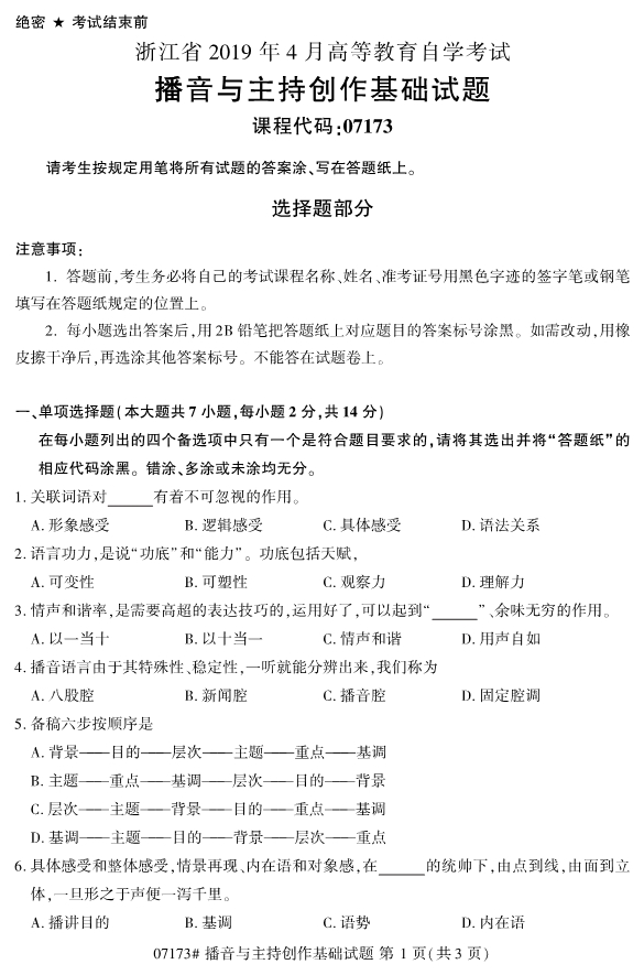 浙江省2019年4月自考07173播音与主持创作基础试题