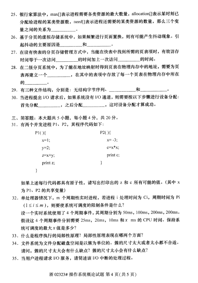 • 所在位置:浙江自考网 > 自考试卷 > 全国2019年4月自考02323操作系统概论试题