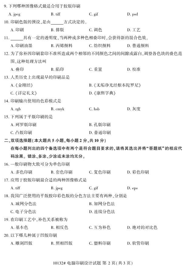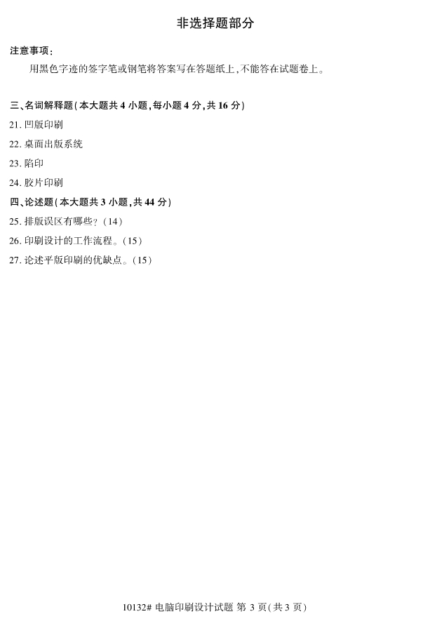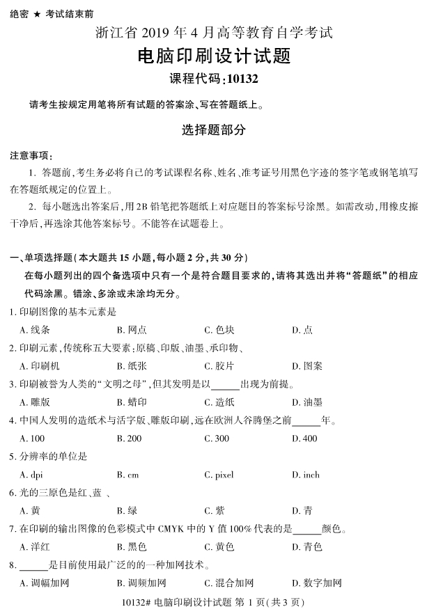 浙江省2019年4月自考10132电脑印刷设计试题