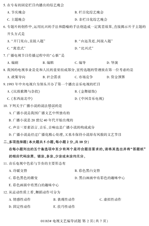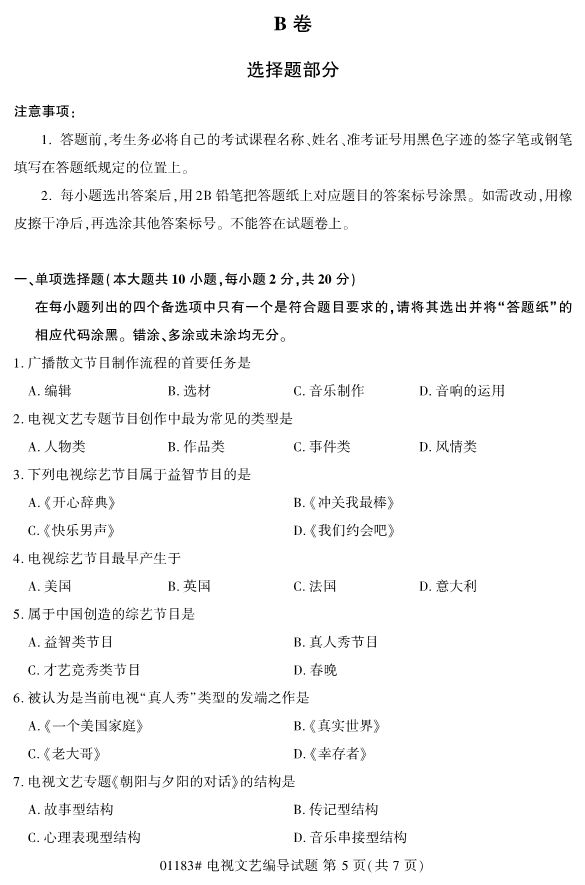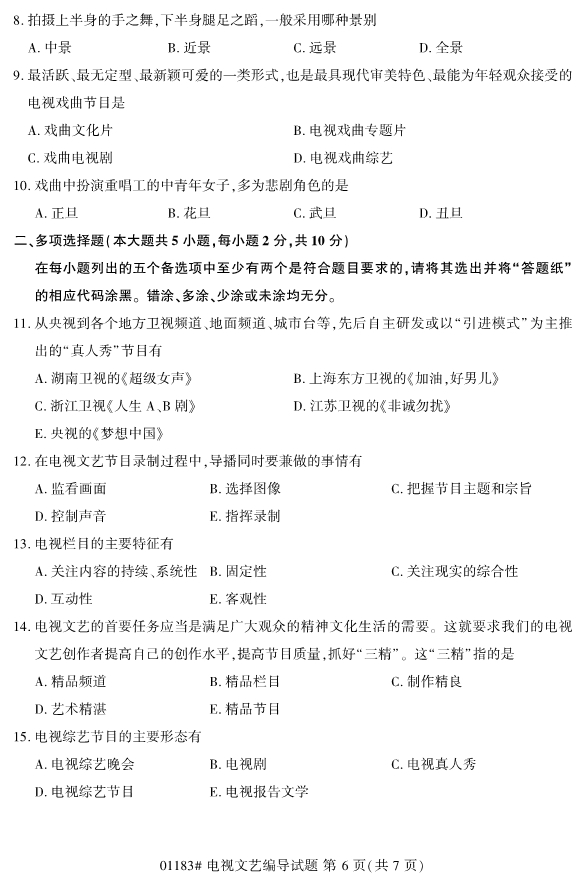• 所在位置:浙江自考网 > 自考试卷 > 浙江省2019年4月自考01183电视文艺编导试题