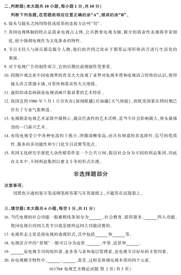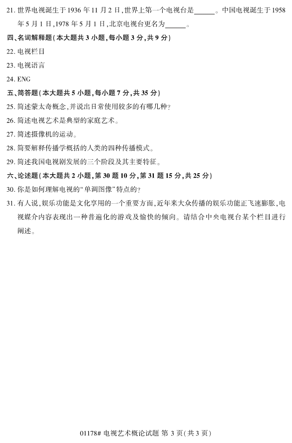 浙江省2019年4月自考01178电视艺术概论试题