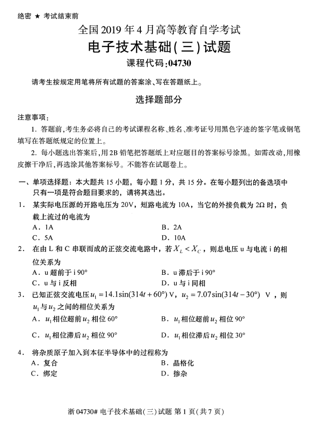 下一篇:全国2019年4月自考02234电子技术基础(一)试题
