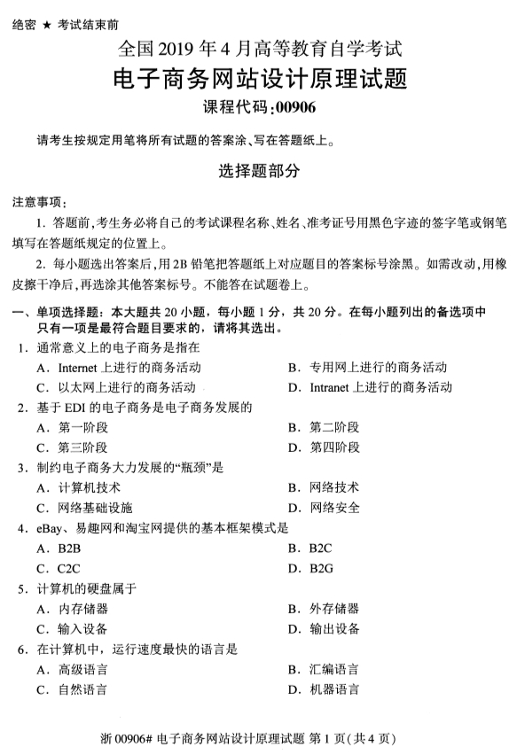 上一篇:全国2019年4月自考00896电子商务概论真题