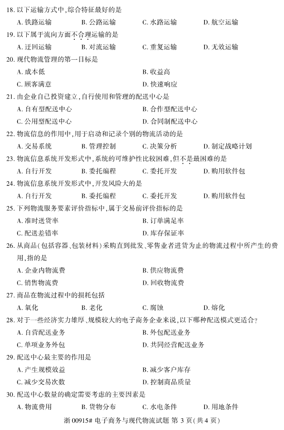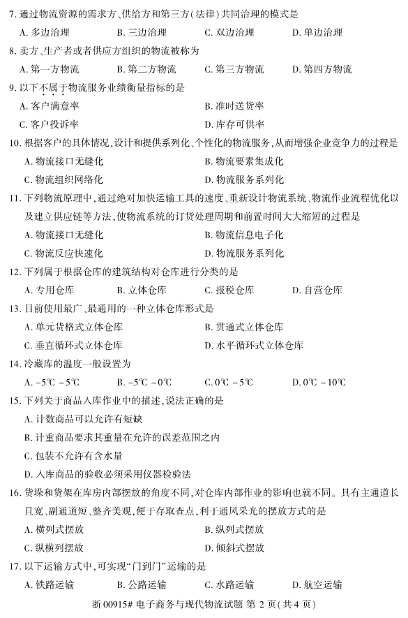 • 所在位置:浙江自考网 > 自考试卷 > 全国2019年4月自考00915电子商务与现代物流真题