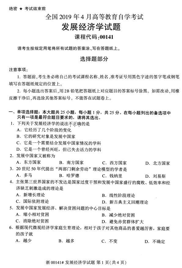 - 2024年10月浙江自考00090国际贸易... 12-25