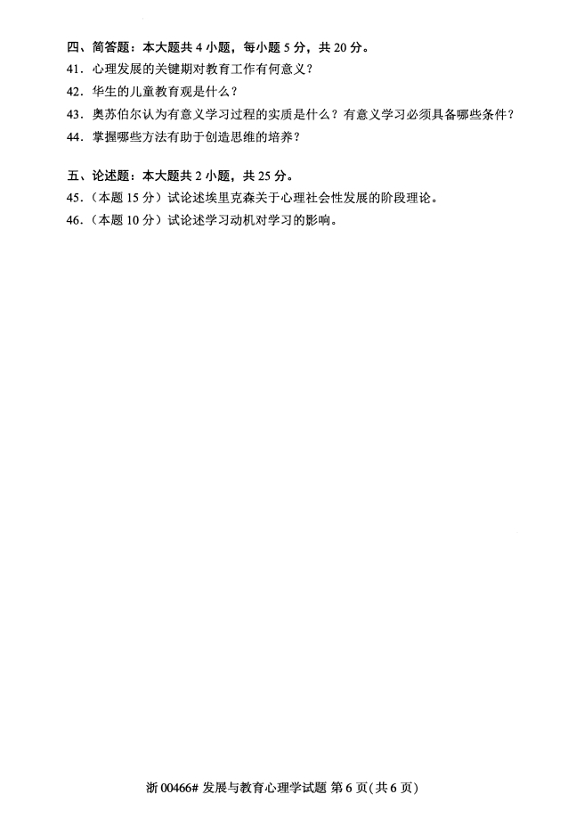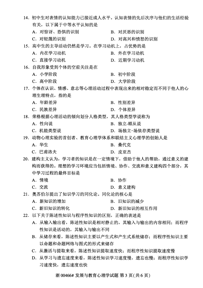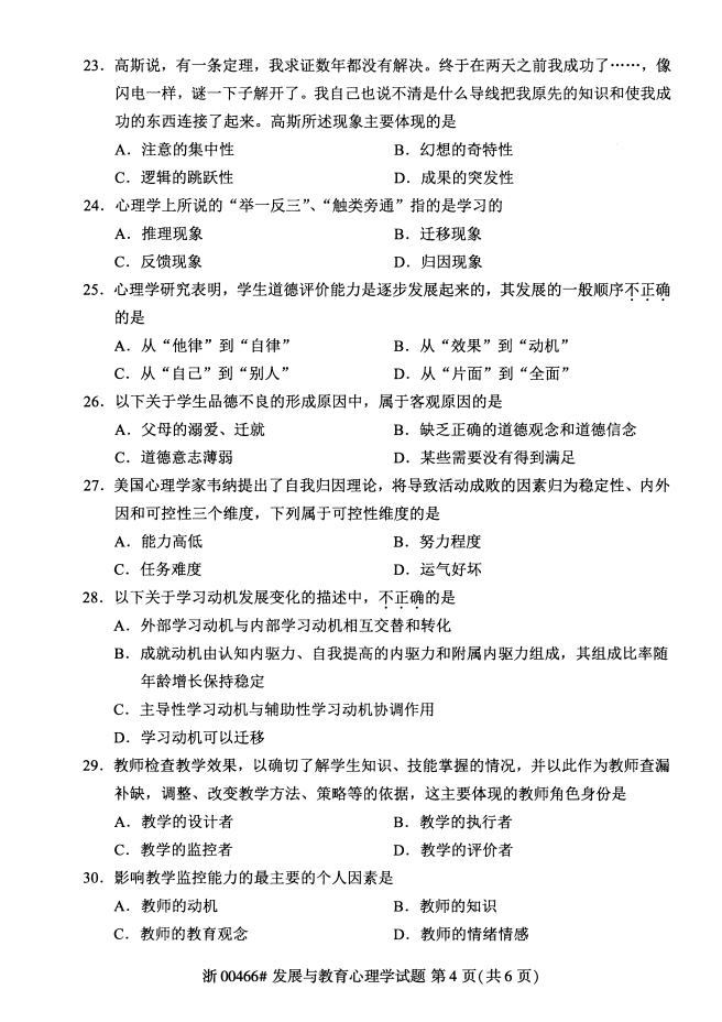 • 所在位置:浙江自考网 > 自考试卷 > 全国2019年4月自考00466发展与教育心理学真题