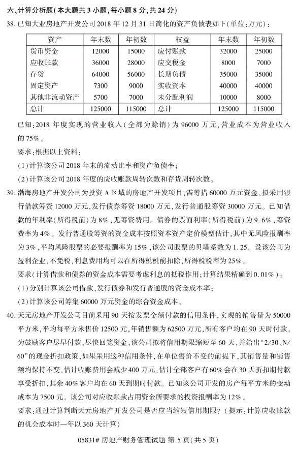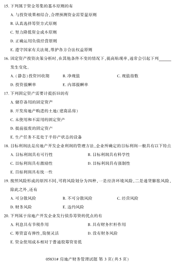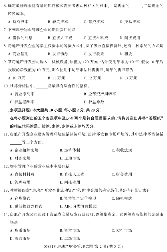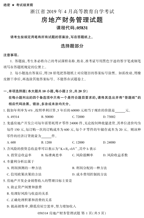 - 2024年10月浙江自考00067财务管理学试题 12-20