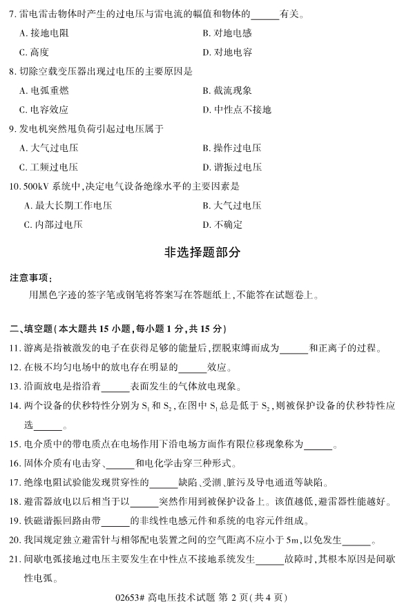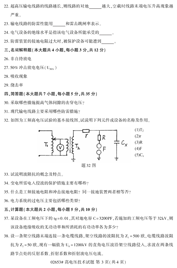 真题下载:浙江省2019年4月自考02653高电压技术真题
