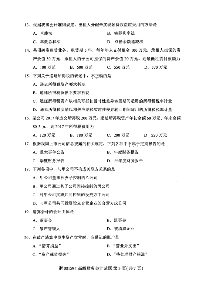 • 所在位置:浙江自考网 > 自考试卷 > 全国2019年4月自考00159高级财务会计真题