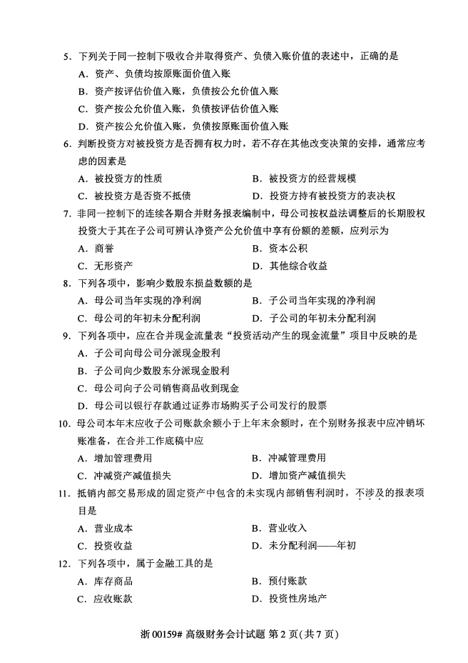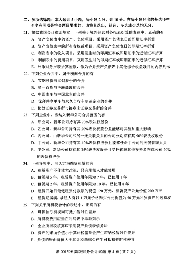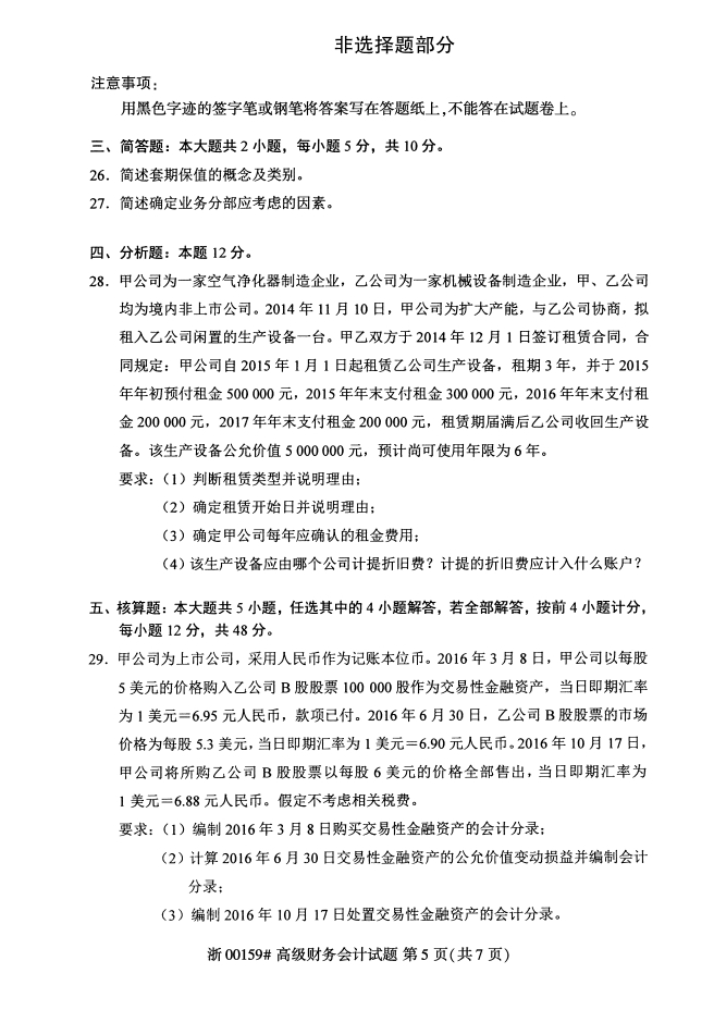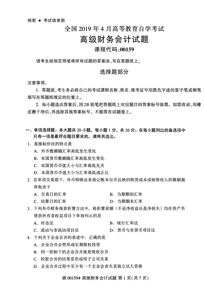 真题下载:全国2019年4月自考00159高级财务会计真题