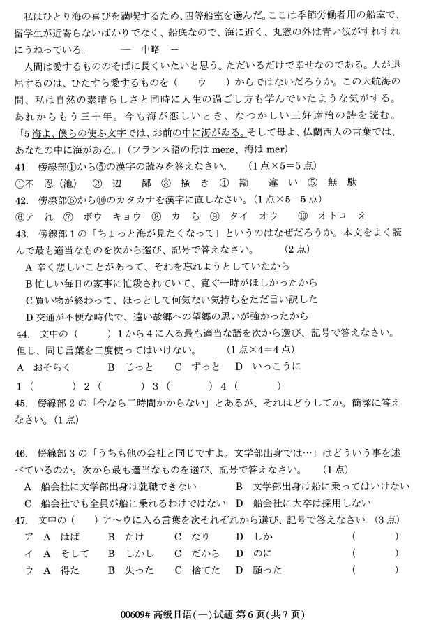 • 所在位置:浙江自考网 > 自考试卷 > 浙江省2019年4月自考00609高级日语(一)真题