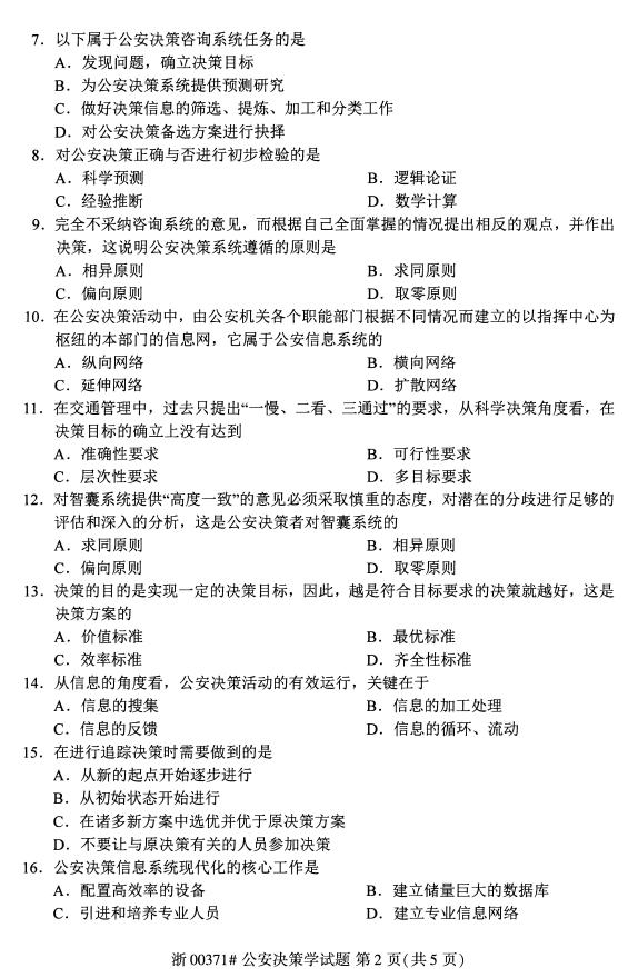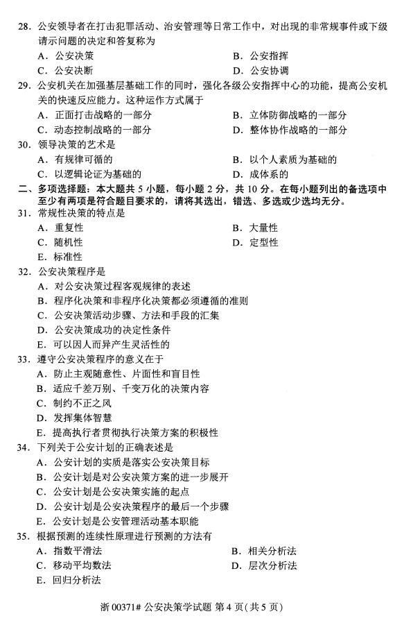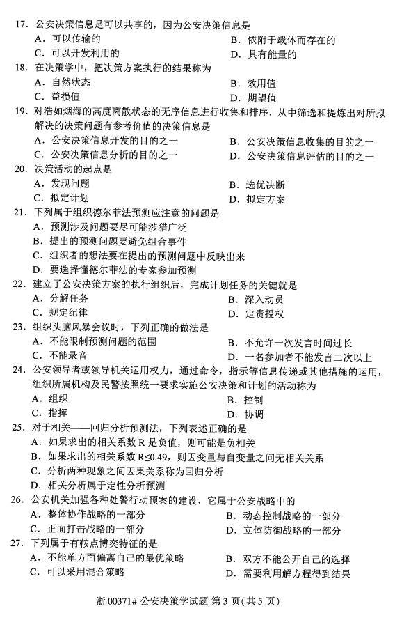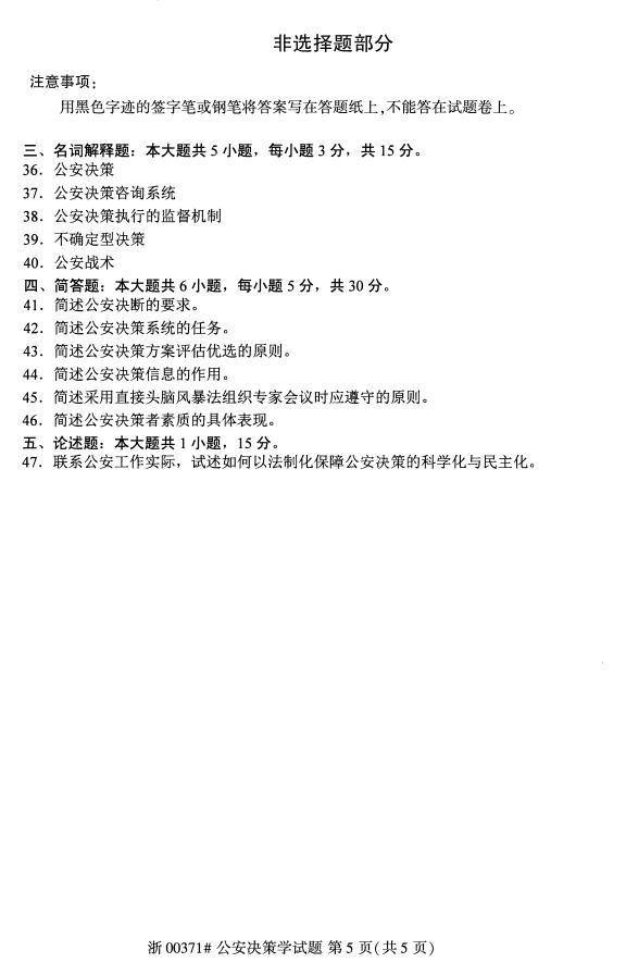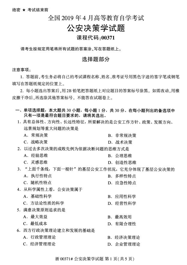 • 所在位置:浙江自考网 > 自考试卷 > 全国2019年4月自考00371公安决策学真题
