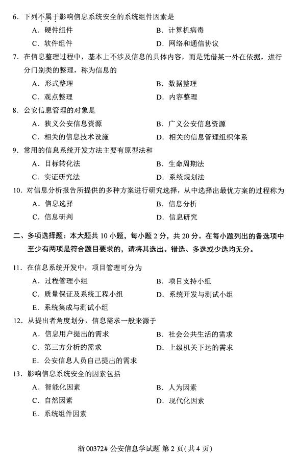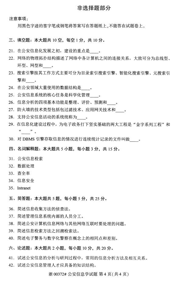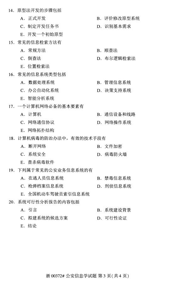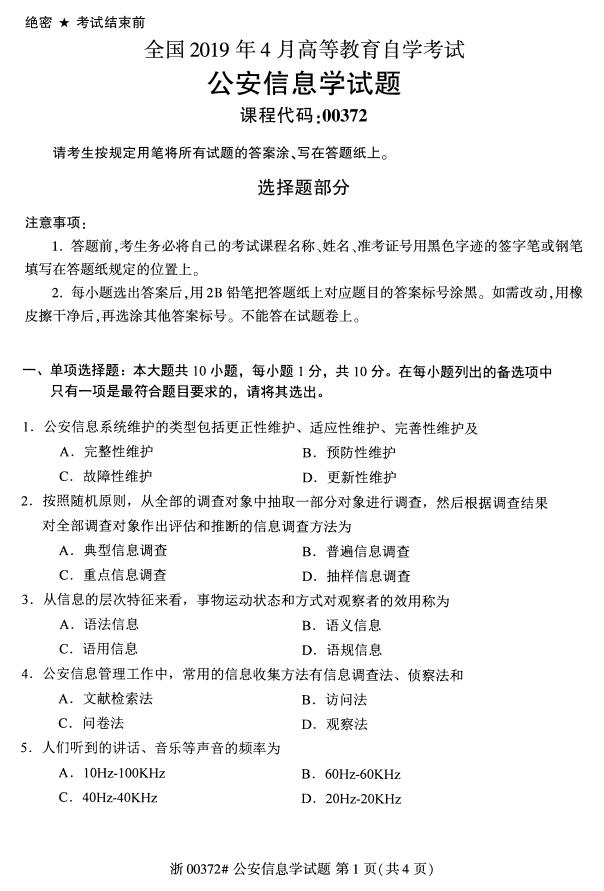 • 所在位置:浙江自考网 > 自考试卷 > 全国2019年4月自考00372公安信息学真题