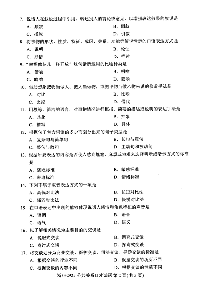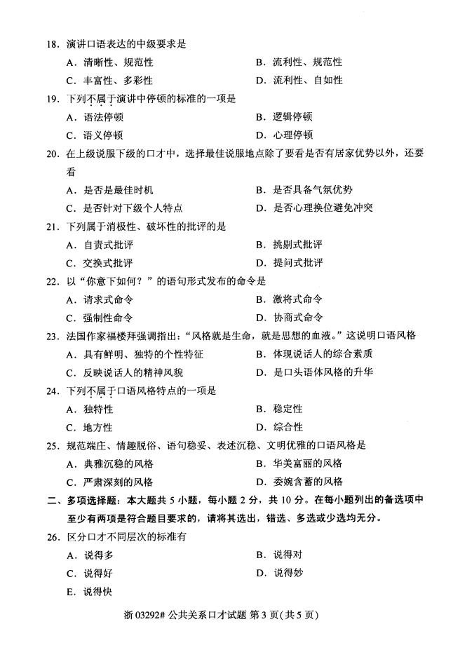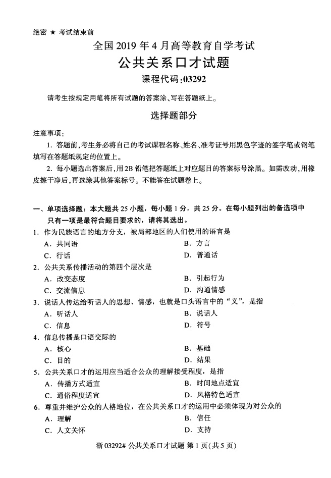 真题下载:全国2019年4月自考03292公共关系口才真题