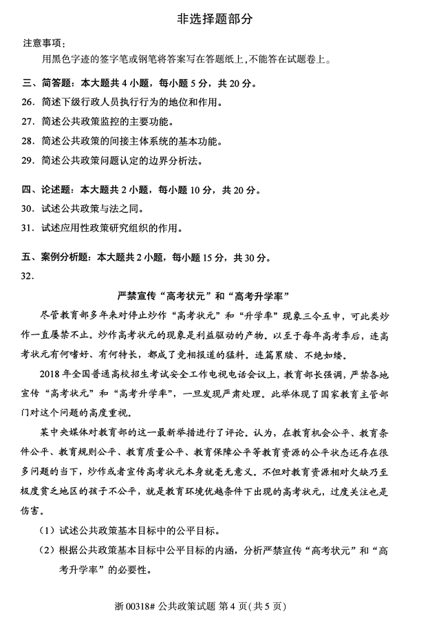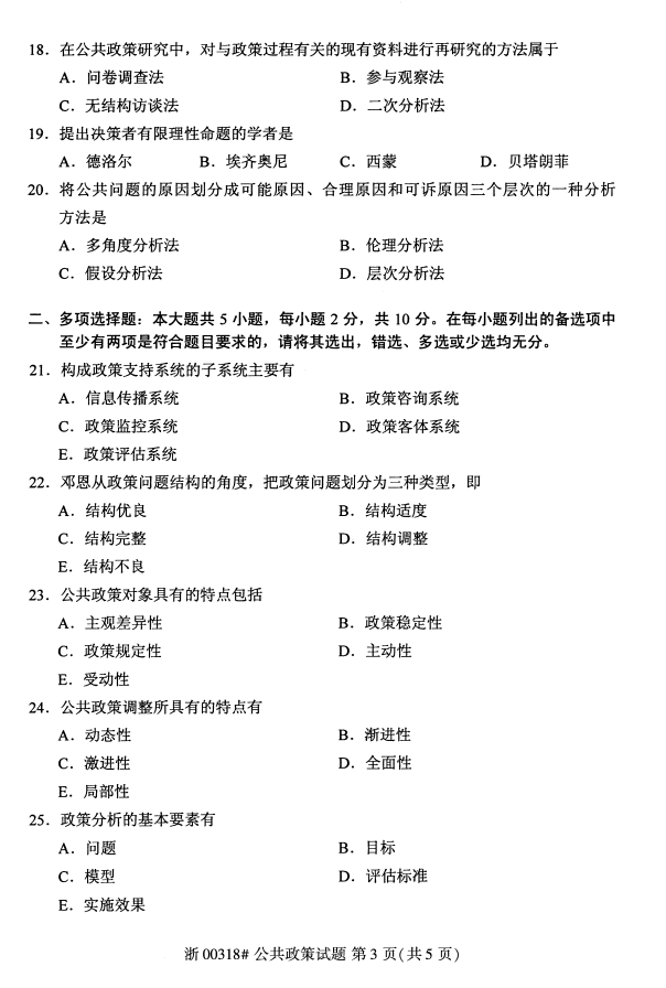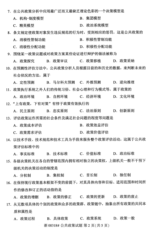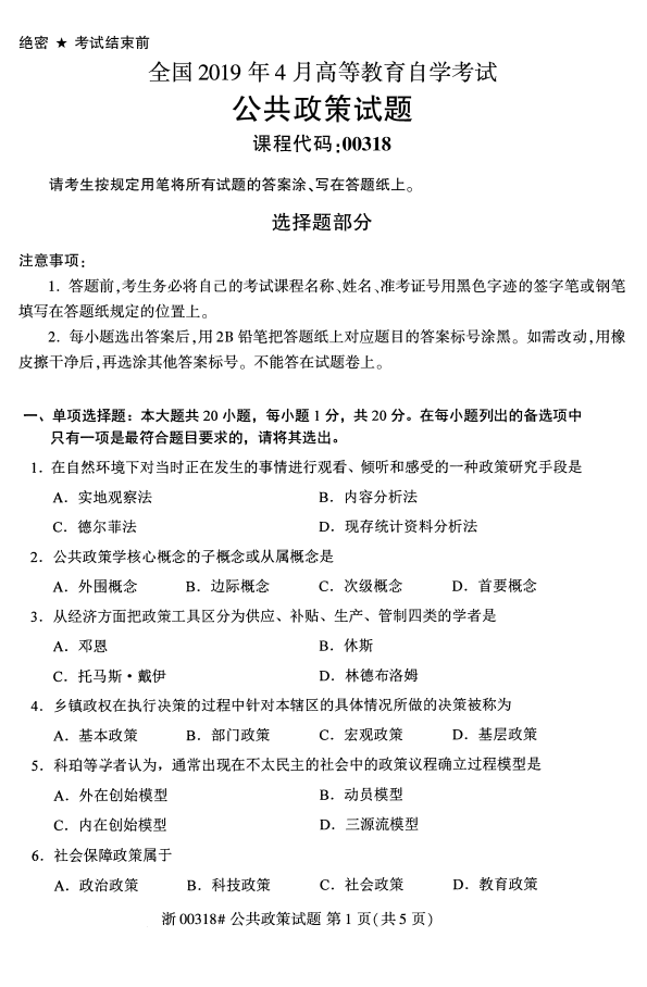 • 所在位置:浙江自考网 > 自考试卷 > 全国2019年4月自考00318公共政策真题