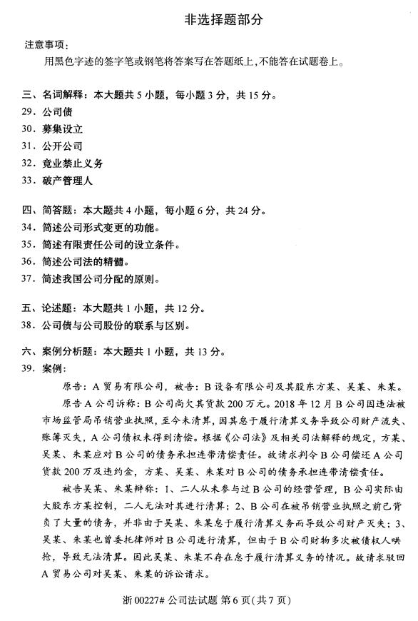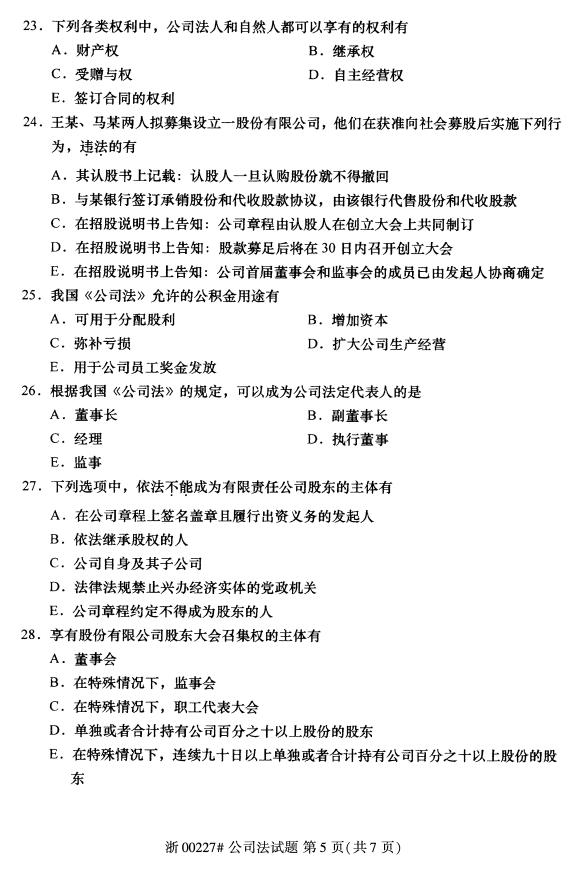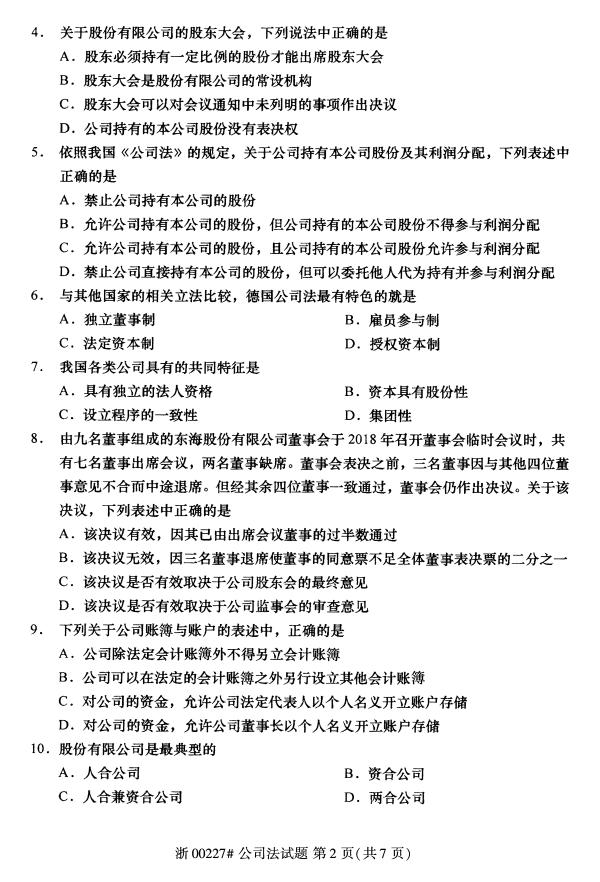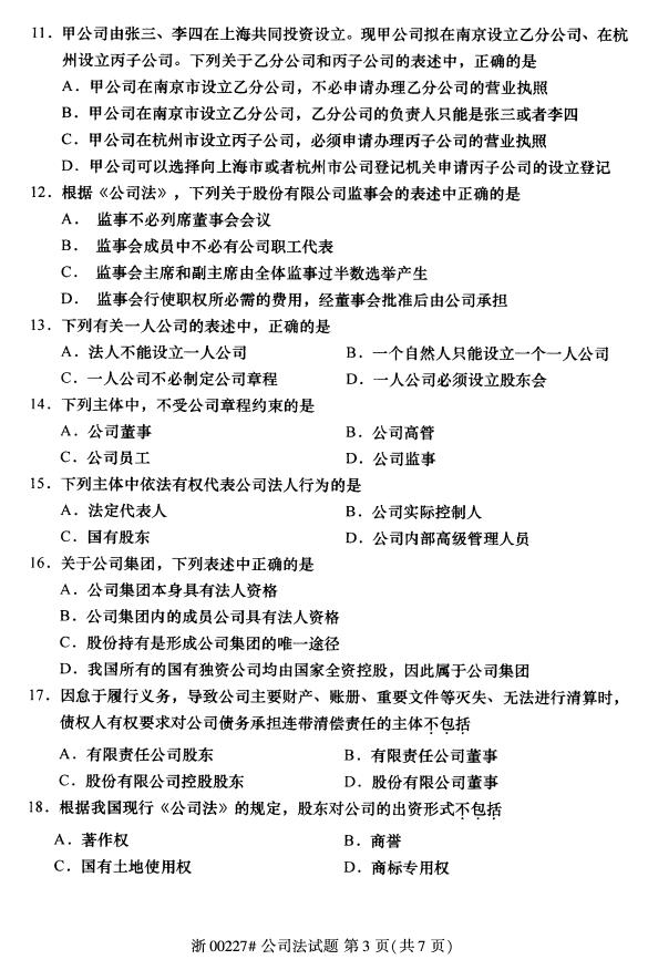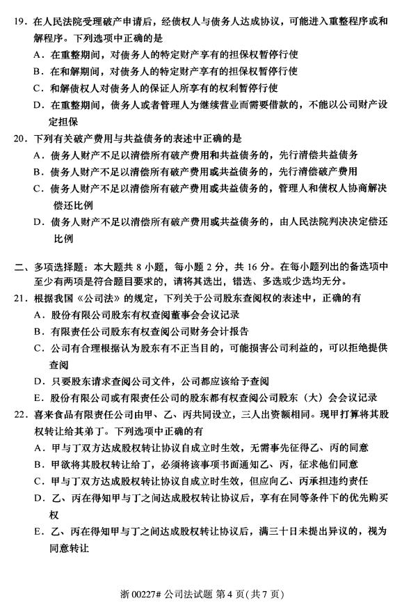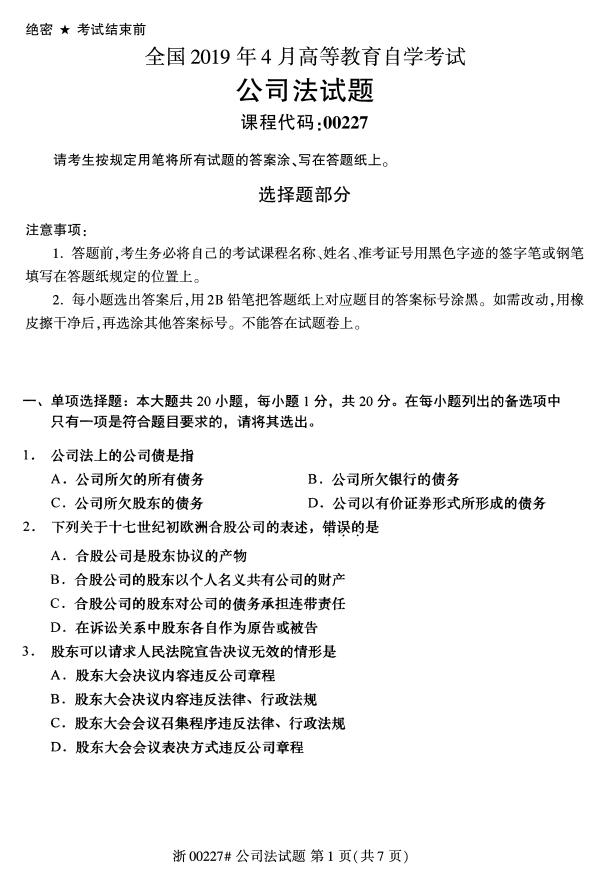 • 所在位置:浙江自考网 > 自考试卷 > 全国2019年4月自考00227公司法真题