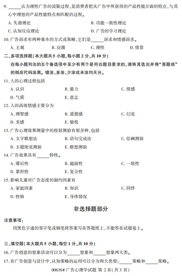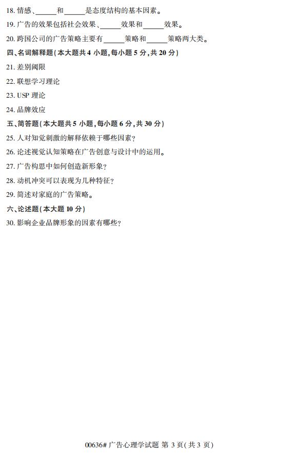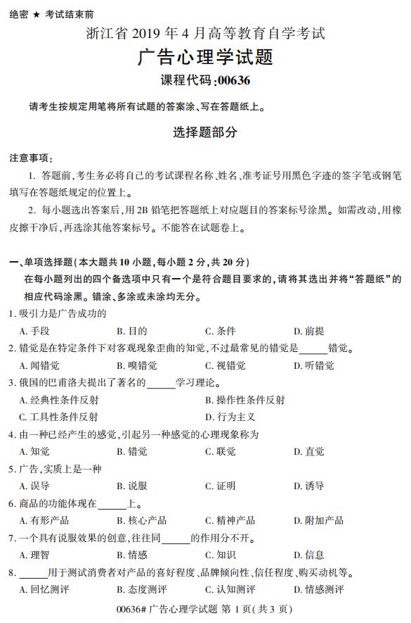 真题下载:浙江省2019年4月自考00636广告心理学真题