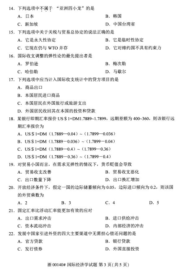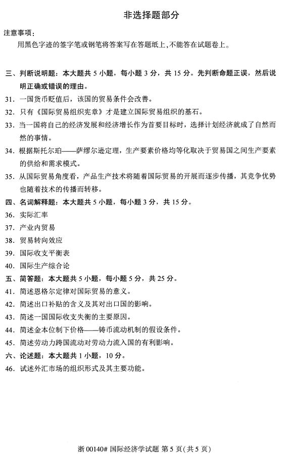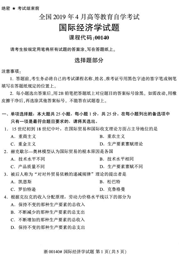 真题下载:全国2019年4月自考00140国际经济学真题