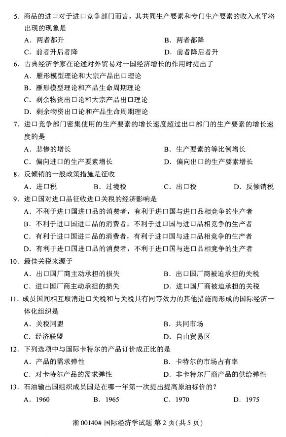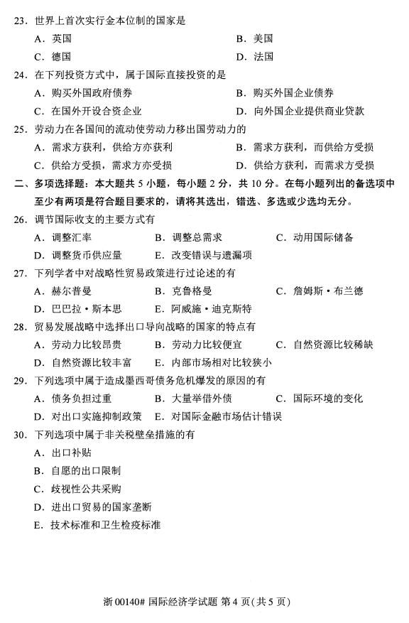 • 所在位置:浙江自考网 > 自考试卷 > 全国2019年4月自考00140国际经济学真题