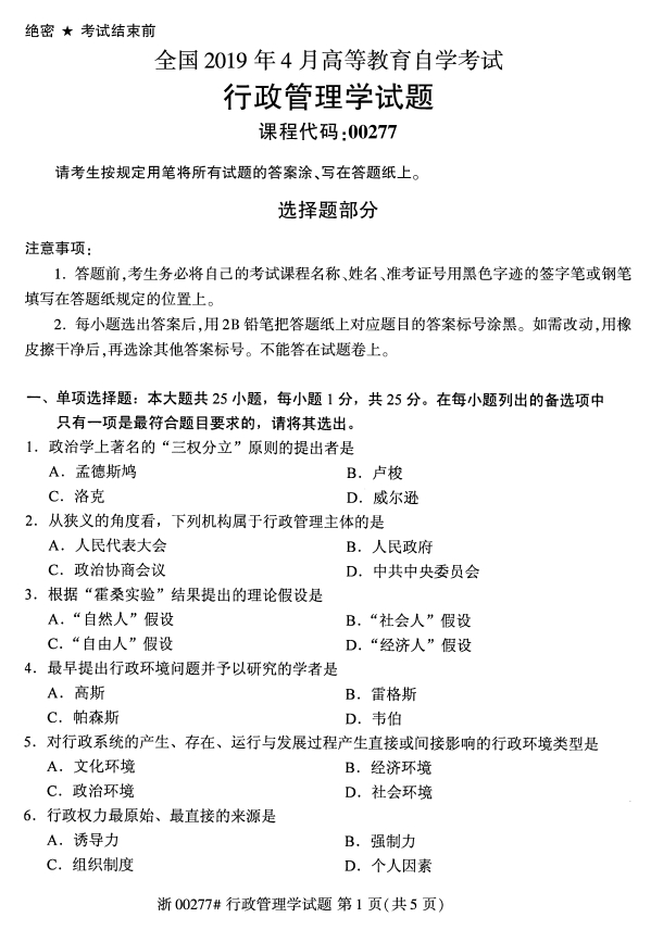 上一篇:浙江省2019年4月自考00923行政法与行政诉讼法(一)真题