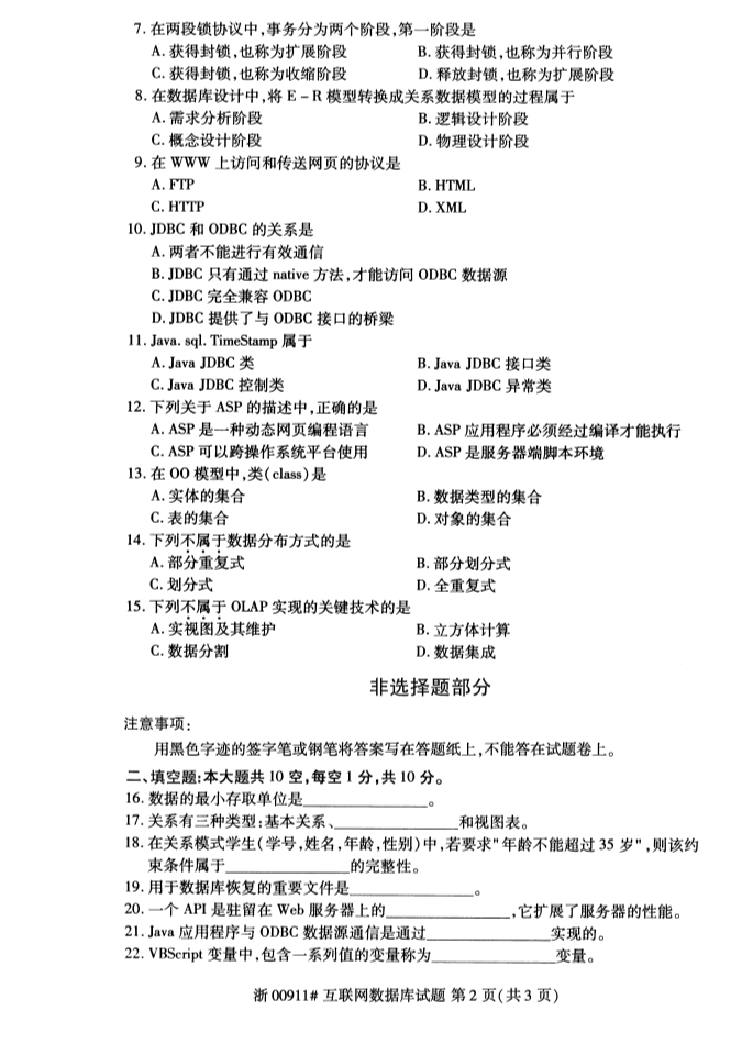 全国2019年4月自考00911互联网数据库真题