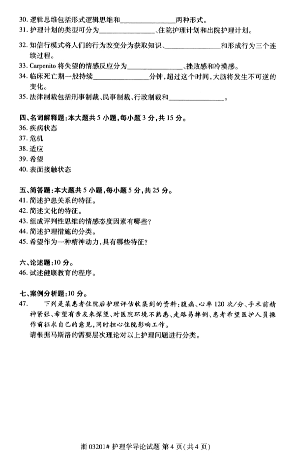 • 所在位置:浙江自考网 > 自考试卷 > 全国2019年4月自考03201护理学导论真题