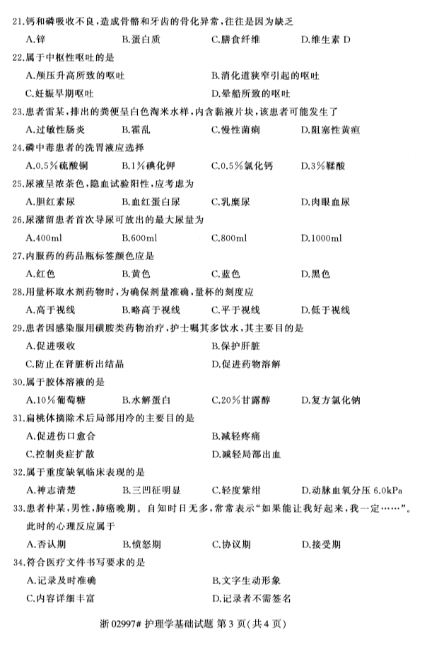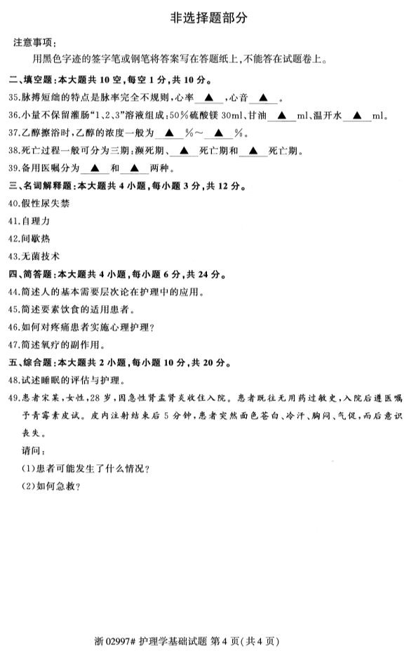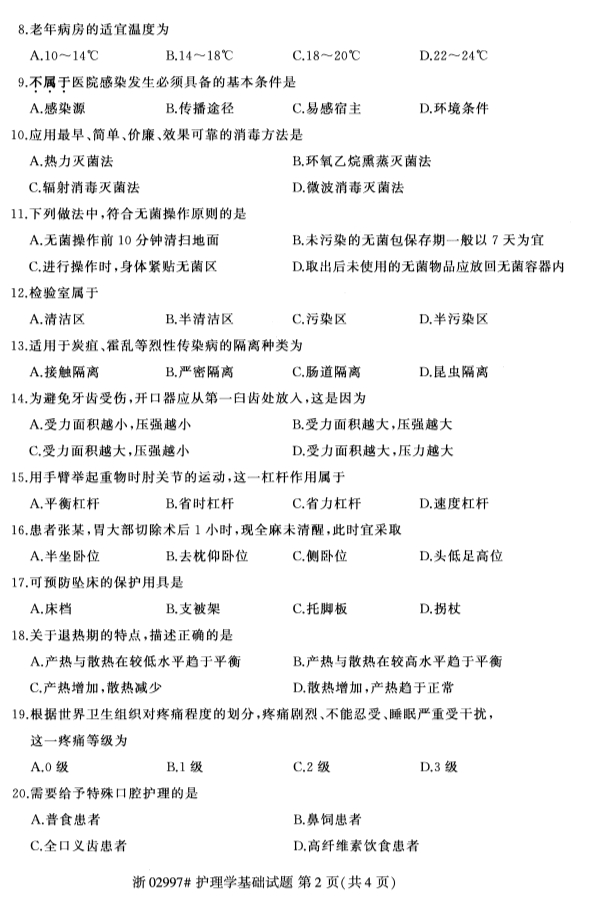 • 所在位置:浙江自考网 > 自考试卷 > 全国2019年4月自考02997护理学基础真题