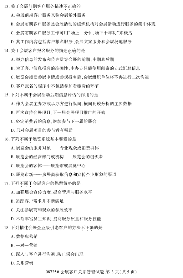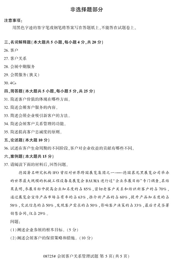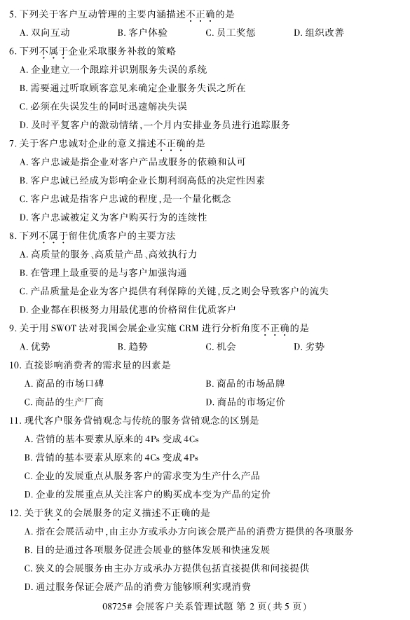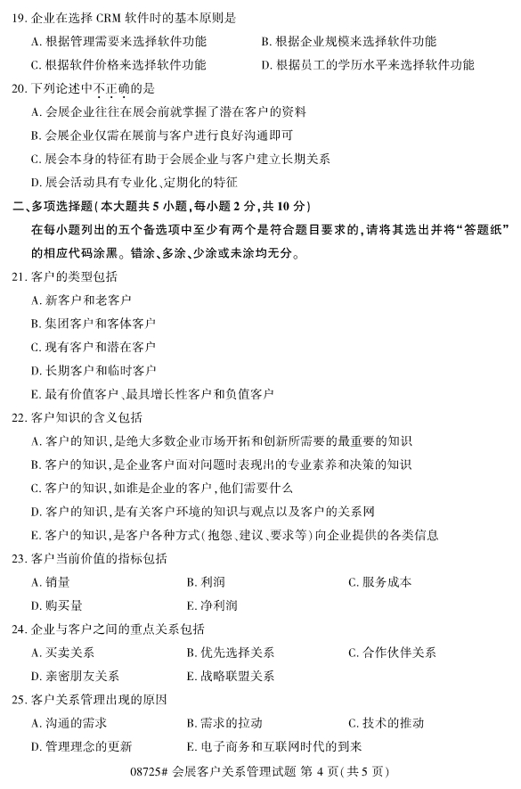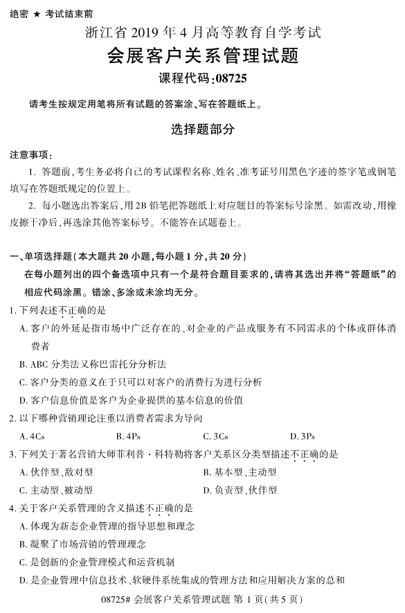 浙江省2019年4月自考08725会展客户关系管理真题